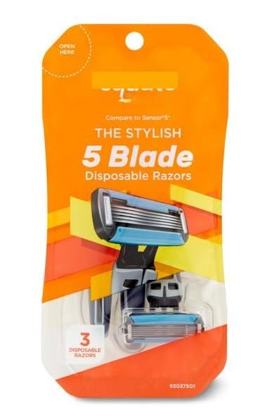 E.quate The Stylish 5 Blade Disposable Razors with Dual Lubrication, 3 Count