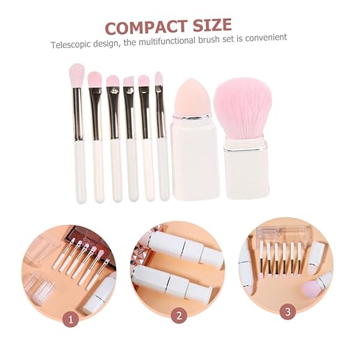 Professional Mini Makeup Brush Set Portable Retractable Blush and Eyeshadow Brushes with Handle for Women Travel-friendly Cosmetic Tool Kit in Coconut Milk White with PVC Case