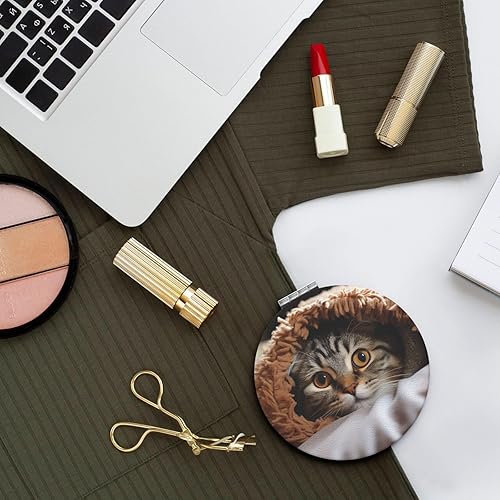 Travel Makeup Mirror for Women Double-Sided 1X/2X Magnifying Foldable Cosmetic Mirror Portable Pocket Mirror Cat Under Blanket Vanity Mirror Compact Beauty Mirror for Pocket Purse Clutch(Round Shape,2.6"L x 2.6"W)